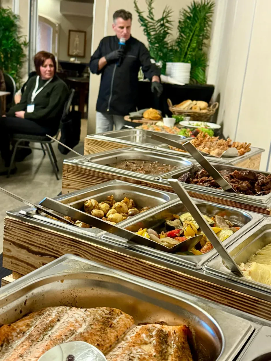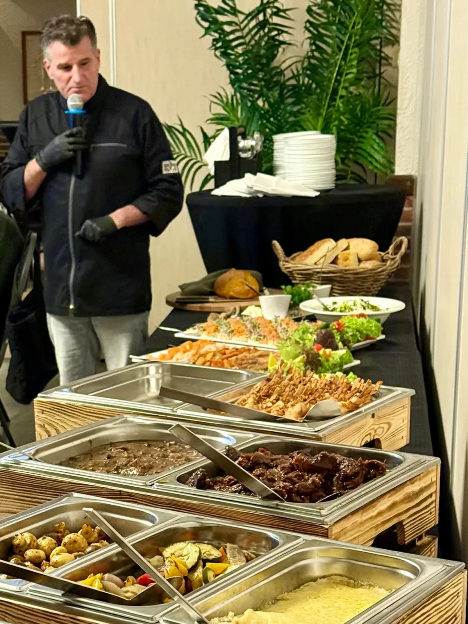 De catering lag deze avond in de vertrouwde handen van ons lid Jeroen Hooijmaijers, chefkok van De Smaakfactor, gevestigd in De Bouwakker. Iedereen werd weer heerlijk verzorgd — voor elk wat wils.